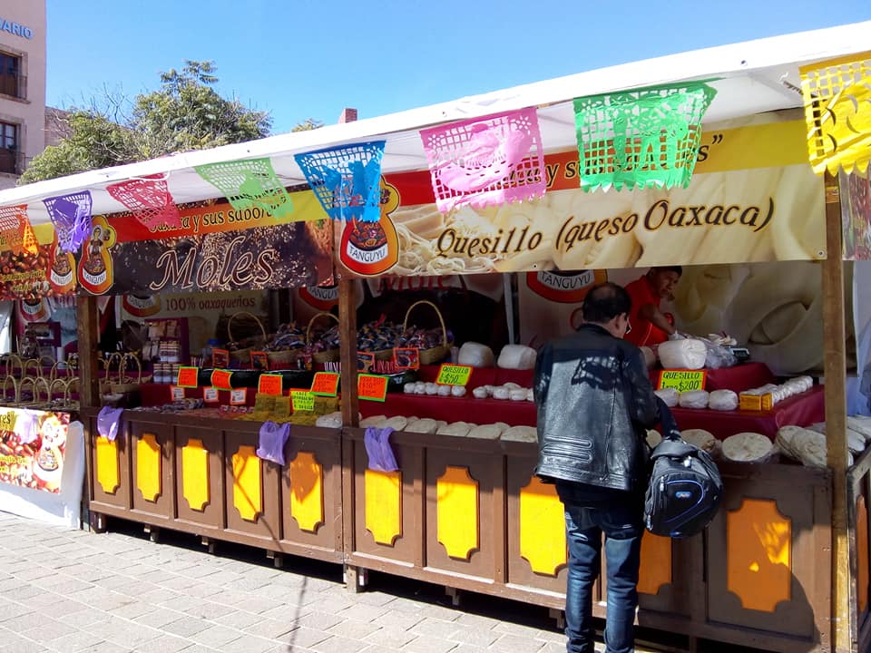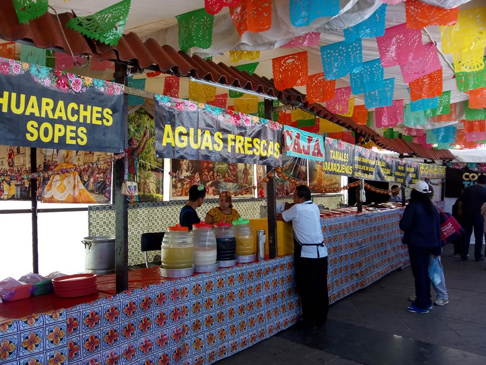Y no podían faltar los huaraches, sopes, tlayudas, tamales oaxaqueños, chocolate, el queso oaxaqueño (quesillo) y una gran variedad de moles, cremas y nieve de coco, zanahoria y piña, lo que se puede degustar mientras se contemplan la diversidad de textiles representativos del estado sureño.
