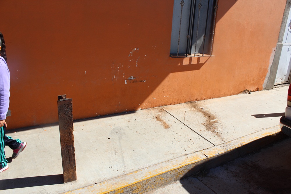 La loca carrera de la camioneta terminó en el domicilio 1 de la avenida Hidalgo, y pudo detenerse porque el filo de la banqueta ponchó uno de los neumáticos y uno de los fierros de contención colocados ahí evitó daños mayores en la casa.