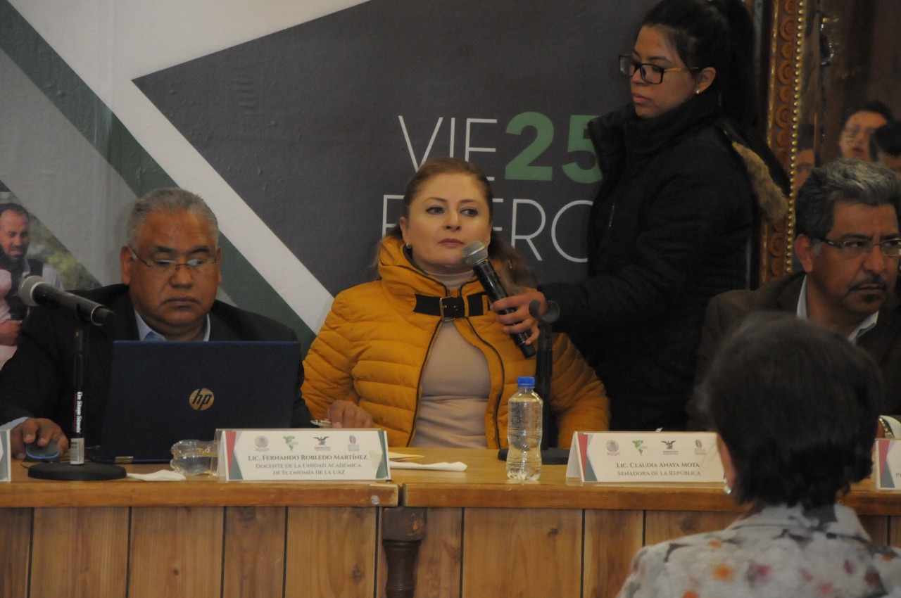 Los panelistas que participaron fueron Marco Vinicio Flores, titular de la Coordinación Estatal de Planeación (Coepla); Bernardo Méndez Lugo, ministro del Servicio Exterior Mexicano en retiro; Francisco Castro Sánchez, del Instituto Nacional de Migración (INM); José Juan Estrada Hernández, titular de la Secretaría del Zacatecano Migrante (Sezami); y Rodolfo García Zamora, Miguel Moctezuma Longoria y Fernando Robledo Martínez, académicos e investigadores de la Universidad Autónoma de Zacatecas (UAZ).