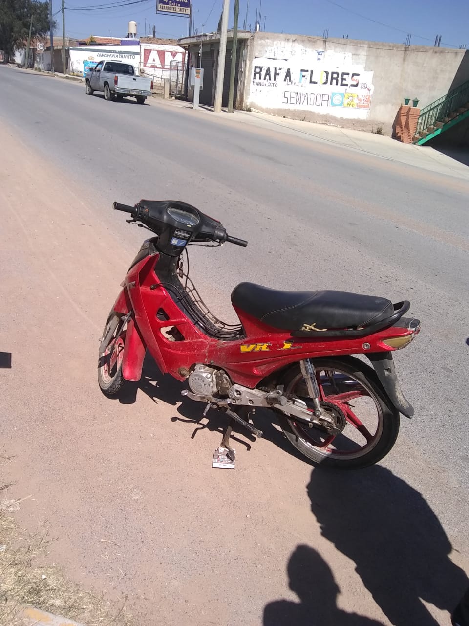 La unidad corresponde a una motocicleta Italika, 110cc, roja, semiautomática, que fue asegurada y puesta a disposición del Ministerio Público.