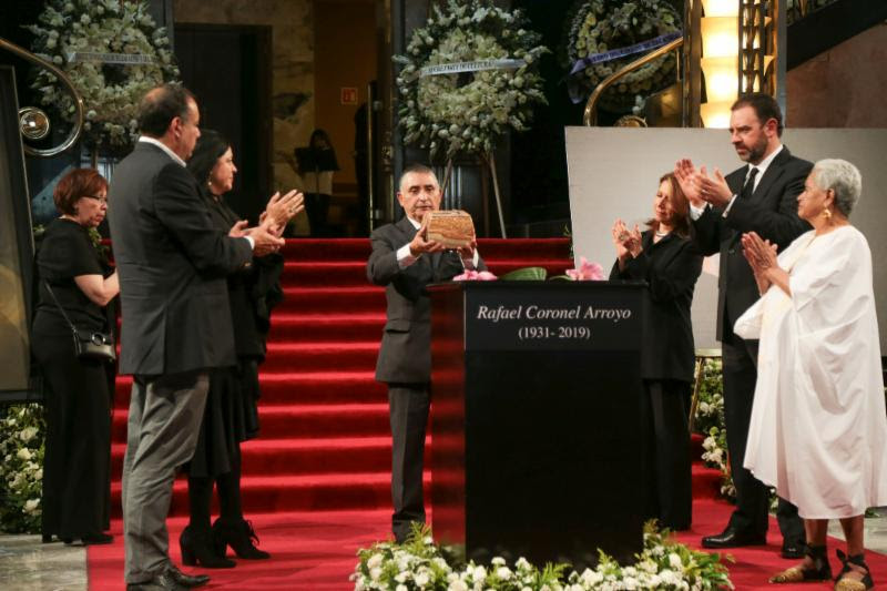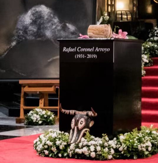 La primera guardia de honor la montaron Juan Coronel, hijo que el artista tuvo con Ruth Rivera –hija menor de Diego Rivera–; Alejandra Frausto; el gobernador Alejandro Tello y la viuda de Rafael Coronel.