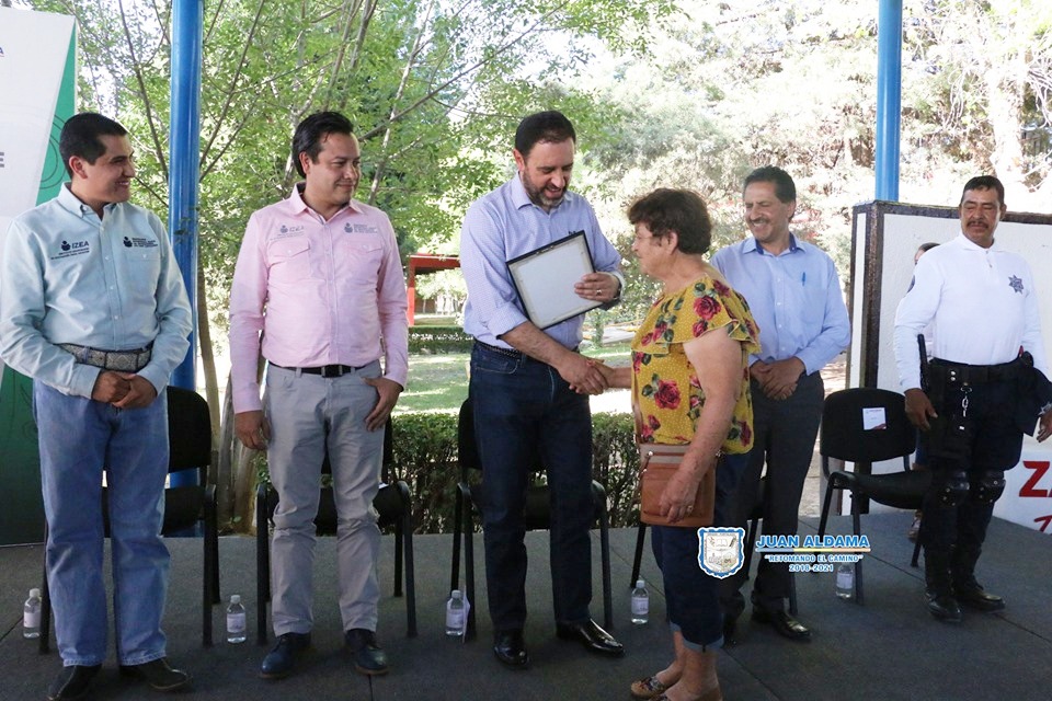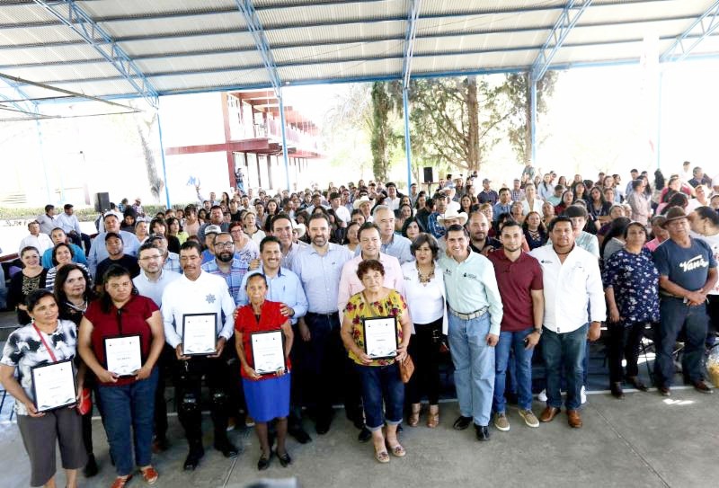 Como parte de la entrega de los mil 500 certificados que se realizará en todo el estado, el mandatario otorgó simbólicamente algunos de ellos a pobladores de Juan Aldama.