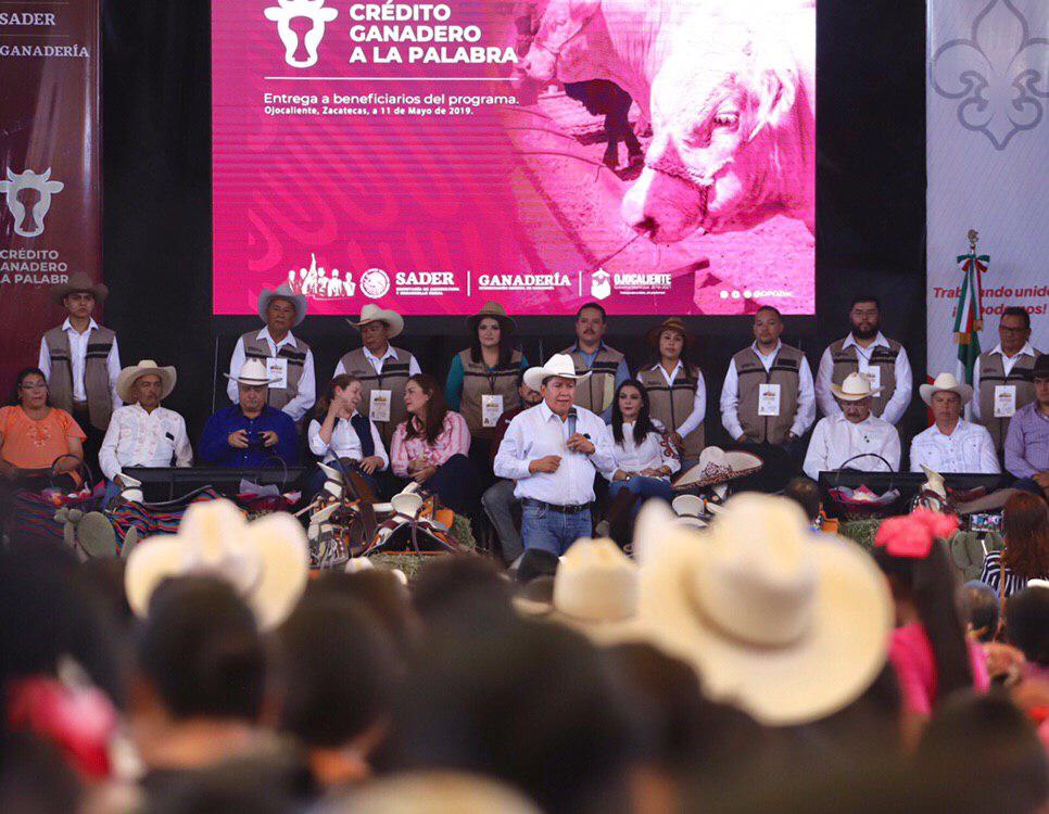 Asimismo, el coordinador nacional de Ganadería destacó que el programa ha tenido mucho éxito en el estado y tan sólo en Ojocaliente ya existen alrededor de 650 solicitudes para acceder al Crédito Ganadero a la Palabra. Por tal motivo, pidió a los productores de la región no desesperarse ya que se trata de una primera fase de entrega y posteriormente se integrarán a nuevos solicitantes ya que la instrucción del Presidente Andrés Manuel López Obrador es que nadie quede fuera.