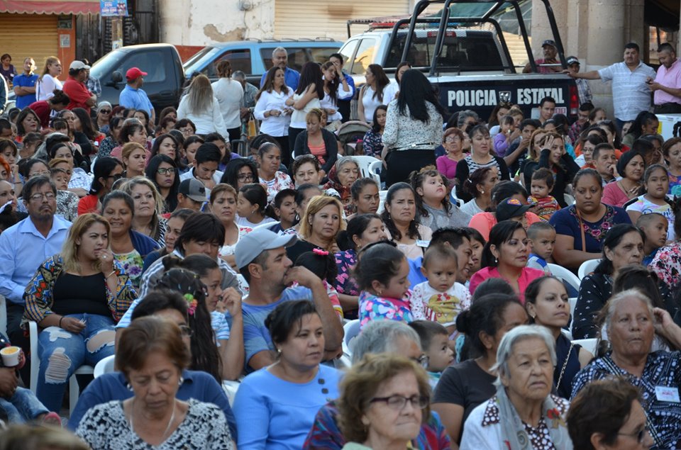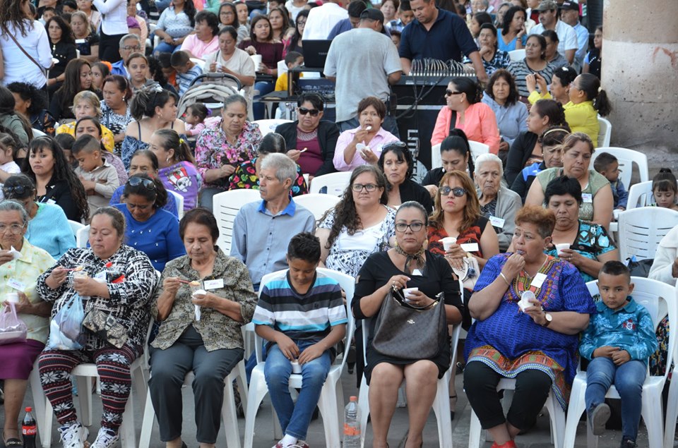 Reunidas en la plaza principal de Miguel Auza, Zacatecas, la mamás y sus familias disfrutaron de un refrigerio brindado por el Sistema Municipal para el Desarrollo Integral de la Familia (SMDIF).