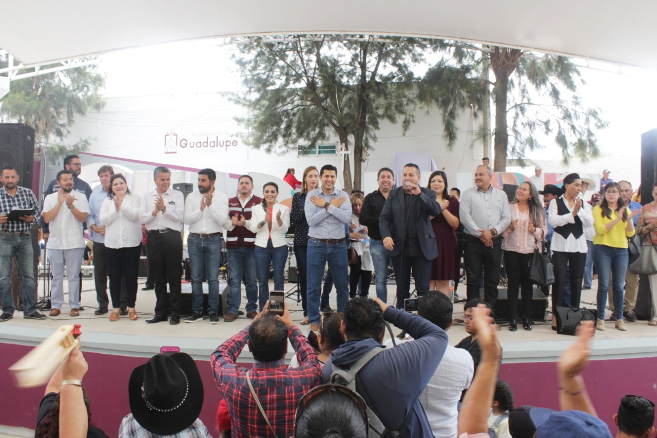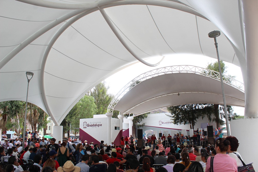 “Hace un año estuvieron en este escenario el senador Ricardo Monreal y David Monreal, coordinador nacional de Ganadería, y se comprometieron a construir este domo, esta concha acústica, y gracias a ello, ahora se pueden proteger de la lluvia y del Sol, además de dignificar este espacio para los artistas locales”, expresó el presidente municipal.