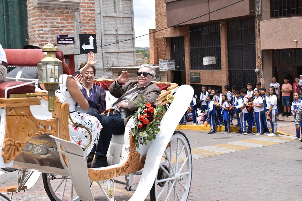 El homenajeado fue paseado en carreta y ovacionado por estudiantes y pobladores del municipios, siempre arropado también por Juan Carlos Villegas, pintor originario de Potrero de Gallegos, y la escritora valparaisense Peggy Bonilla.