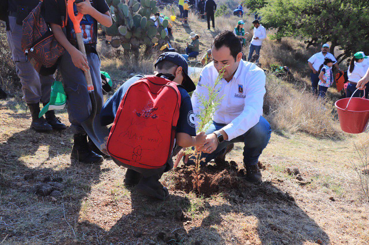 En conjunto con la Secretaría del Agua y el Medio Ambiente, la organización Ciudadanos de a Pie, el grupo de jóvenes de Scouts México, vecinos y familias zacatecanas, iniciaron acciones de reforestación en el Ecoparque Centenario para dar continuidad al compromiso de plantar 250 mil árboles para este año en colonias y comunidades de la capital.