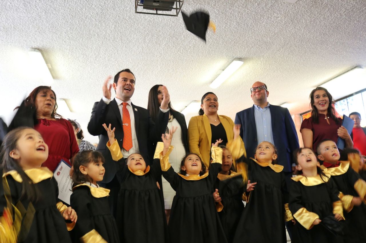 El primer edil señaló que “son 17 niñas y niños que van a pasar ya al kínder, una etapa más de sus vidas y estoy convencido que serán el día de mañana hombres y mujeres de bien porque se están graduando con honores, nos están comentando que fueron niñas y niños muy atentos, muy respetuosos y que están disfrutando de esta etapa de su vida que es la infancia”.