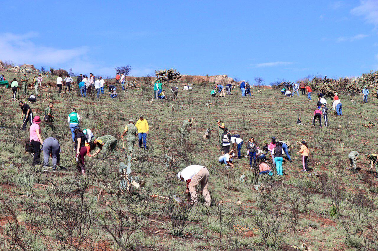 En compañía de decenas de familias, personal de la Comisión Nacional Forestal, Secretaría del Agua y Medio Ambiente, Secretaría de Comunicaciones y Transportes, Secretaría de la Defensa Nacional, Secretaría del Campo, Secretaría de Medio Ambiente y Recursos Naturales, los Servidores de la Nación y colaboradores del Ayuntamiento de Zacatecas, el primer edil enfatizó en la importancia de trabajar en unidad por lograr un Zacatecas sustentable y así contribuir a revertir los efectos del cambio climático y el deterioro de suelos.