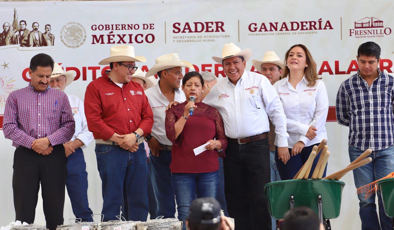 Asimismo, reconoció el esfuerzo conjunto del edil Saul Monreal Ávila por apoyar a los productores pecuarios y manifestó el respaldo del Presidente Andrés Manuel López Obrador hacia los sectores más vulnerables de Fresnillo y su compromiso de llevar justicia social a la gente del campo. Agregó al respecto que los fresnillenses han sido beneficiados por los programas prioritarios del Gobierno de México como Producción para el Bienestar, Pensión para el Bienestar de los Adultos Mayores y Becas para el Bienestar Benito Juárez, entre otros.