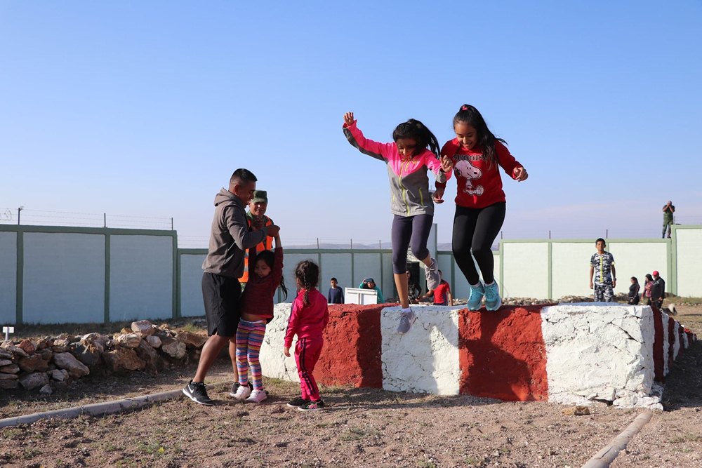 Al evento asistieron familias con sus hijos, quienes fueron capacitados en entrenamiento militar en los 18 obstáculos, realizando ejercicios cuerpo-tierra, rapel, entrenamiento con cuerdas entre otras.