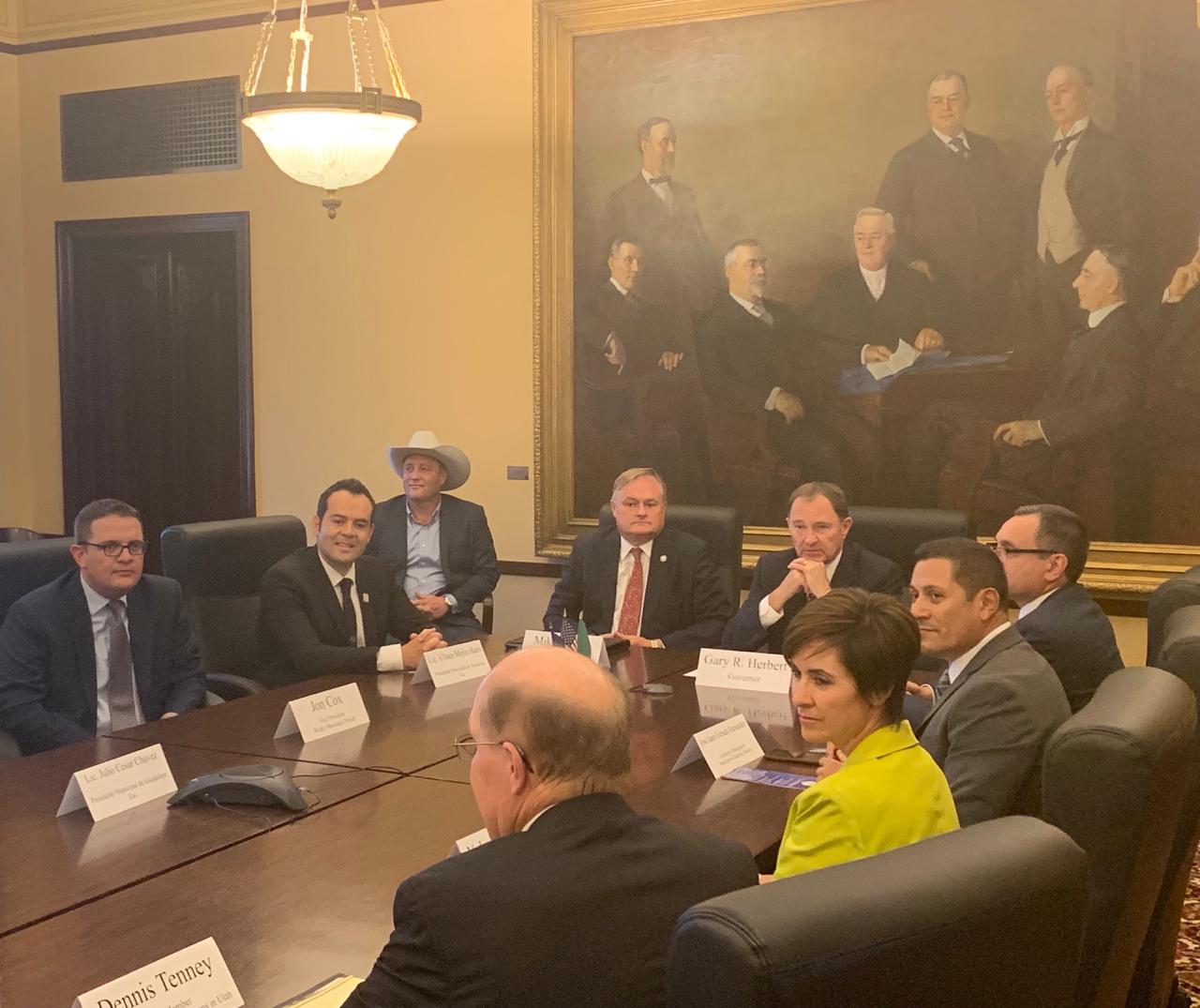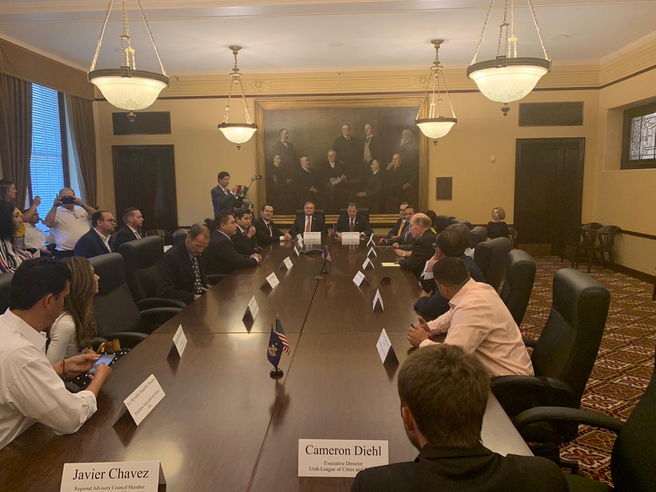 UTAH, EU. En gira de trabajo por Utah, en Estados Unidos, el alcalde de Zacatecas, Ulises Mejía Haro, en conjunto con José Juan Estrada Hernández, titular de la Secretaría del Zacatecano Migrante (Sezami) y otros presidentes municipales, formalizó con el gobernador de Utah, Gary Herbert, una comitiva mixta para tratar temas en materia migratoria y explorar la áreas de oportunidad y cooperación con Zacatecas.