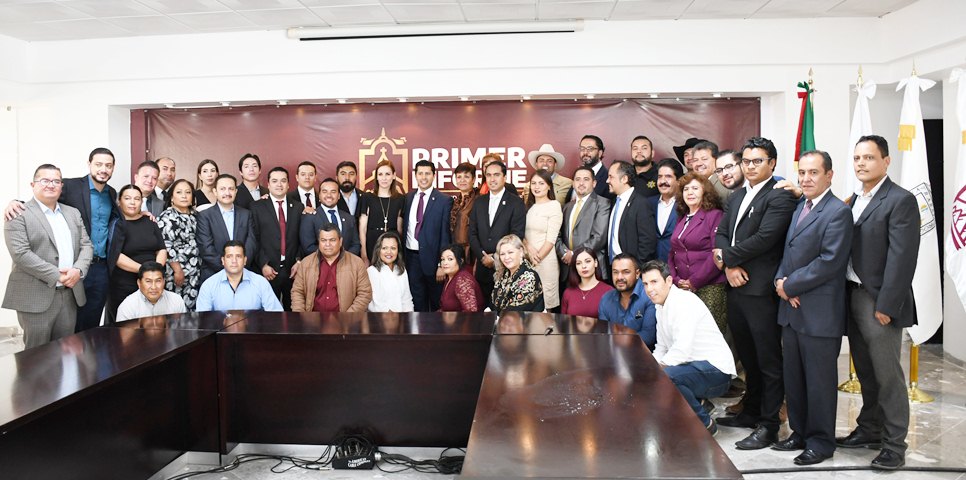 GUADALUPE. El alcalde Julio César Chávez Padilla rindió cuentas y entregó al cuerpo edilicio del Ayuntamiento de Guadalupe el primer informe de actividades del gobierno que encabeza.