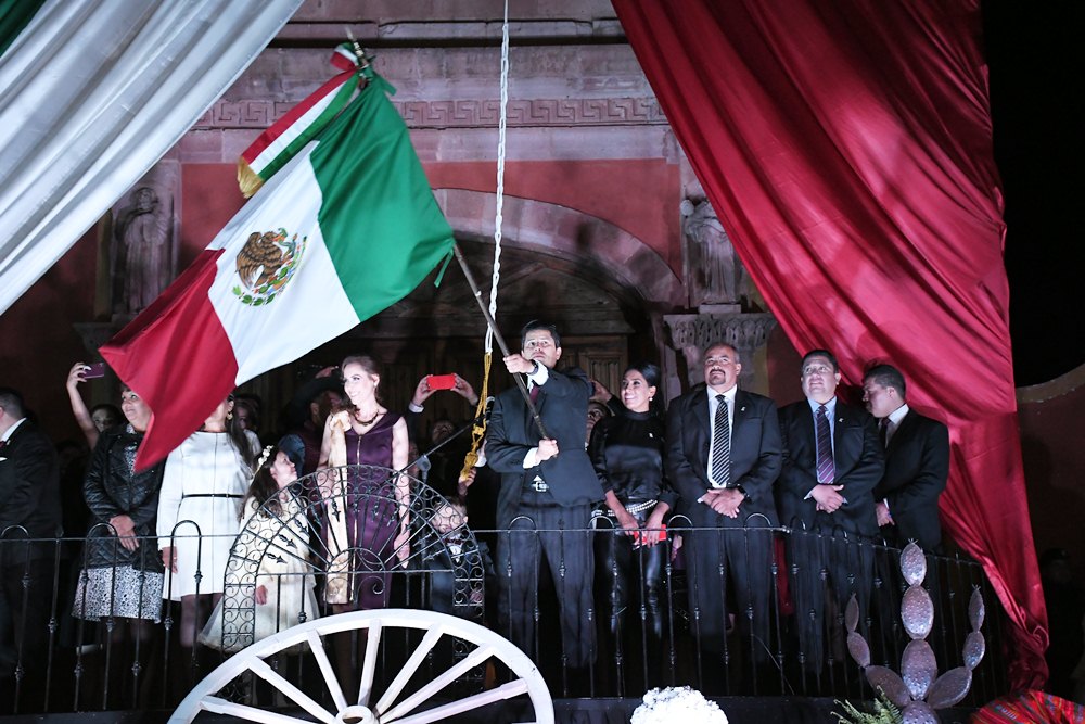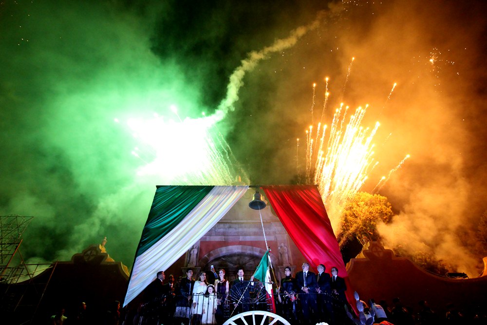 Luego de rendir honores a los símbolos patrios y a los próceres de la independentista, Julio César Chávez gritó: “¡Viva México! ¡Viva Zacatecas! ¡Viva Guadalupe!”, al momento que un espectáculo de pirotecnia iluminaba el cielo y las calles del primer cuadro de este Pueblo Mágico.