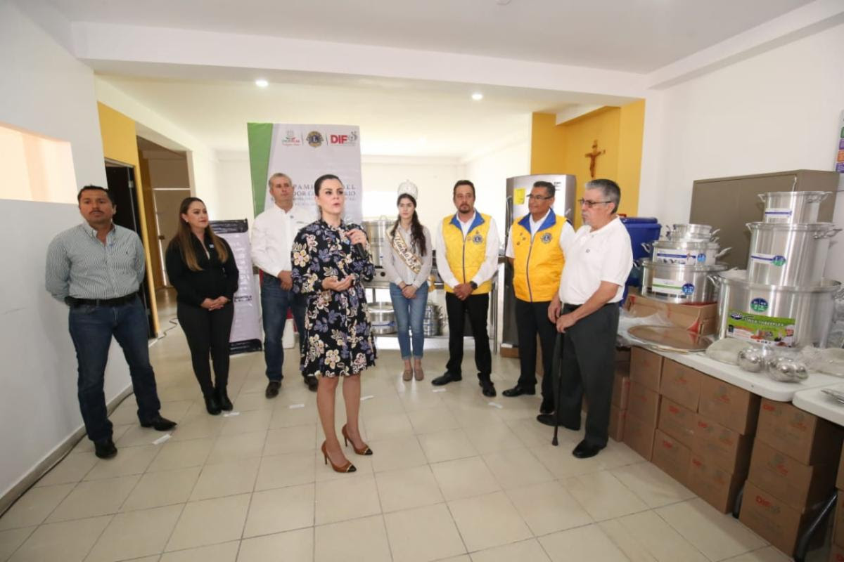 JEREZ, ZAC.- La Presidenta Honorífica del Sistema Estatal para el Desarrollo Integral de la Familia (Sedif), Cristina Rodríguez, entregó equipamiento para el Comedor Comunitario del Club de Leones Jerez López Velarde, que atiende diariamente a más de 150 personas en condición de vulnerabilidad.