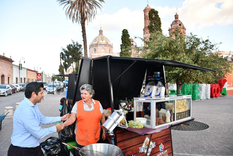 GUADALUPE, ZAC.- El presidente municipal de Guadalupe, Zacatecas, Julio César Chávez Padilla, entregó 15 carritos móviles a comerciantes que se ubican en el Jardín Juárez, algunos de ellos desde hace más de 35 años.