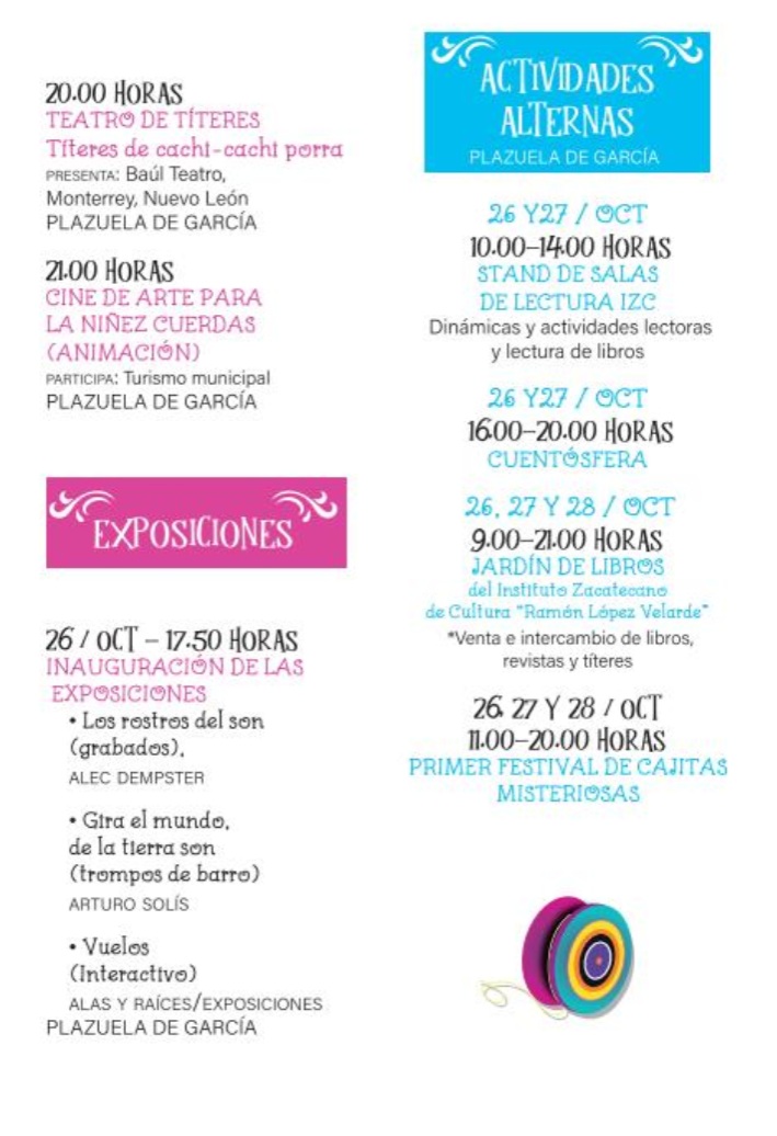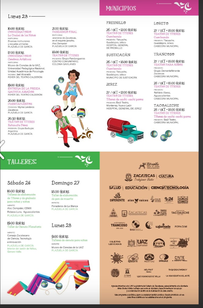 ¡Prepárate!Está próximo el 5º Fandango Internacional de Arte Infantil Gachita Amador en Zacatecas. Agéndalo: del 25 al 28 de octubre.