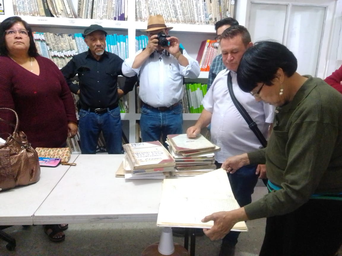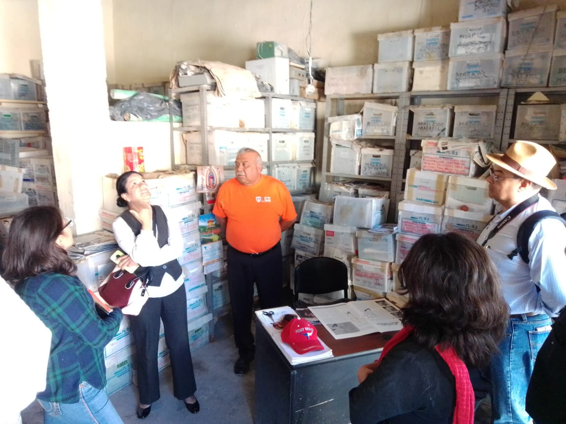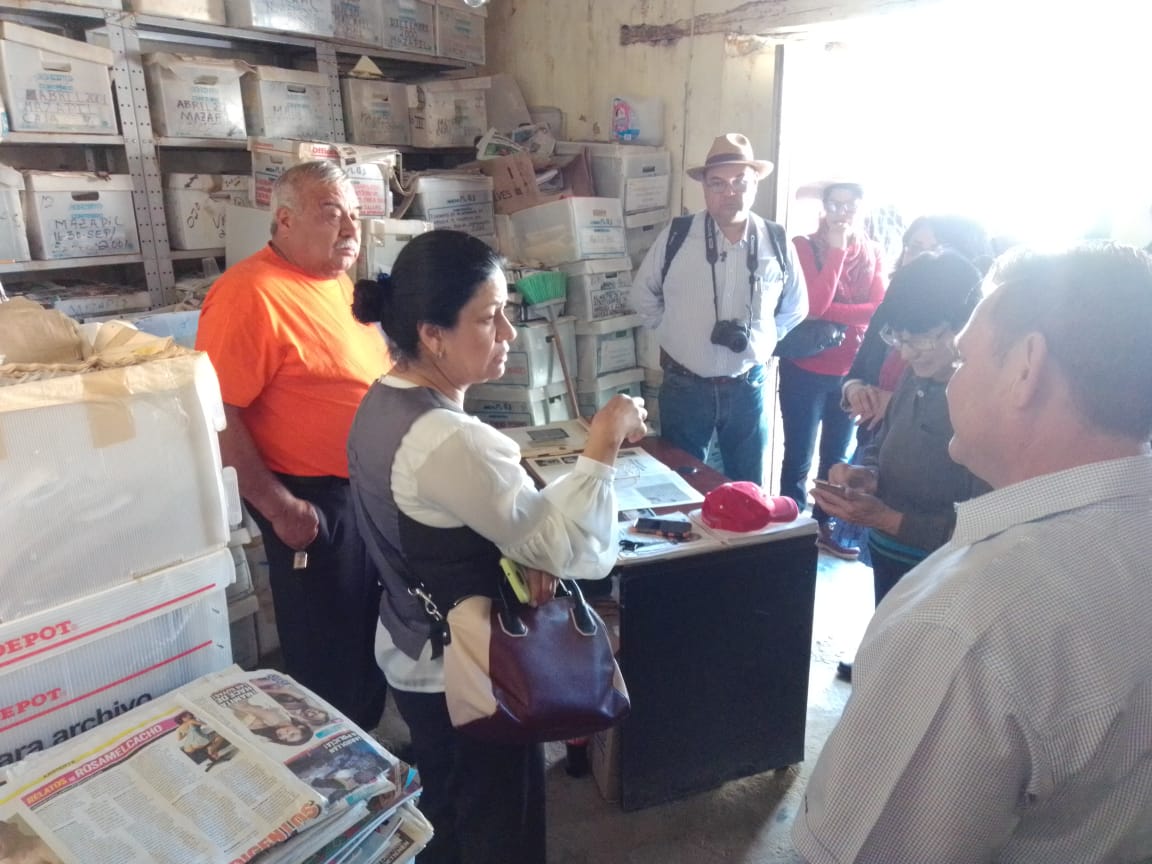 MAZAPIL, ZAC.- El pasado miércoles 9 de octubre como parte de los acuerdos realizados con el Prof. Gregorio Macías Zúñiga la Lic. Mireya Quintos Martínez, directora del Sistema Nacional de Archivos y del Archivo General de la Nación, realizó una visita de inspección en los diferentes archivos de la cabecera municipal de Mazapil, acompañada de directivos del Archivo General de la Universidad Autónoma de Zacatecas “Francisco García Salinas”, Coordinación Municipal de Archivo de Guadalupe y Asociación de Amigos del Patrimonio Zacatecano APAZAC, con la intención de trabajar en conjunto para beneficio de los diferentes acervos documentales de Mazapil.