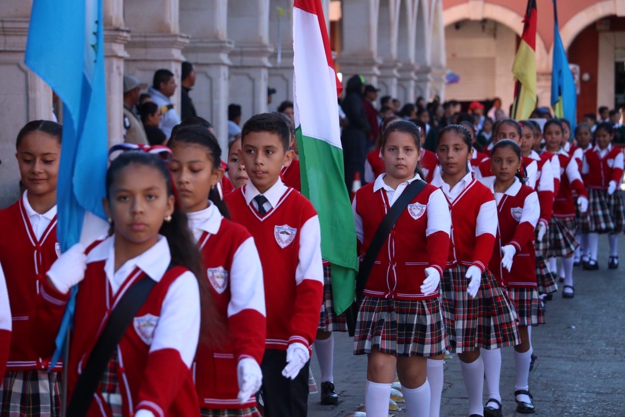 La escolta del pentatlón deportivo militarizado encabezó el desfile con la bandera de la Organización de las Naciones Unidas, seguido de escolta de la escuela 11 de Julio que portaban la bandera de México y de la escolta de la presidencia municipal que llevaba el estandarte con el escudo del municipio.