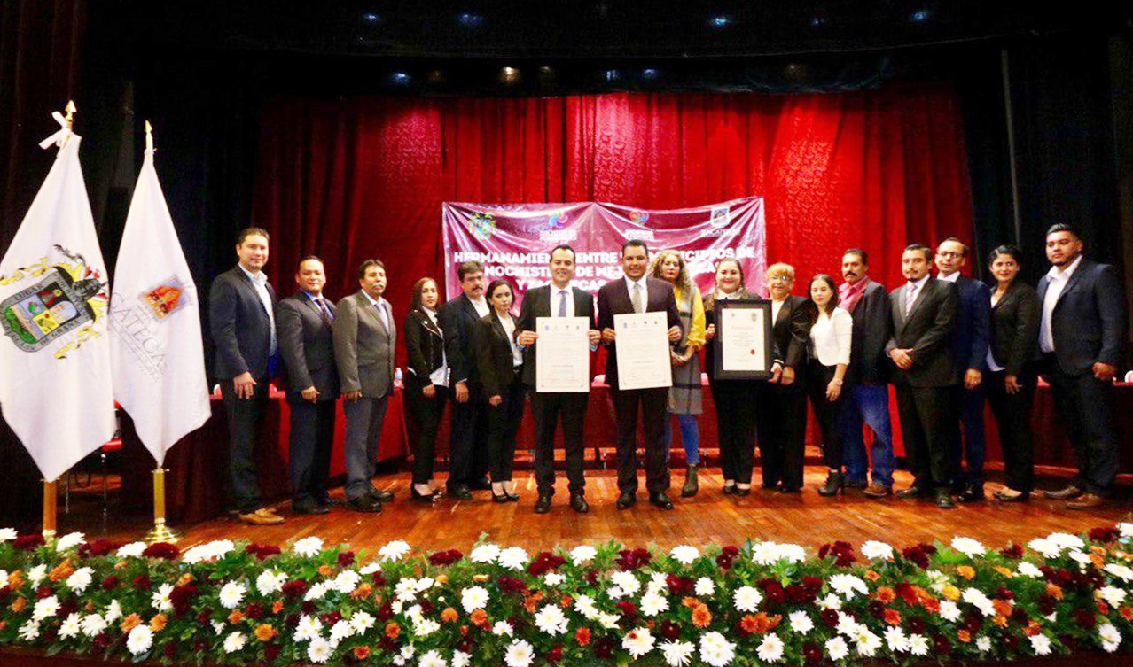 En el marco de las Fiestas de Octubre, el primer edil de la capital enfatizó la importancia de este hermanamiento, el número 36 para Zacatecas y el octavo para Nochistlán, y que representa una oportunidad para impulsar el desarrollo en materia educativa, económica, turística y cultural.