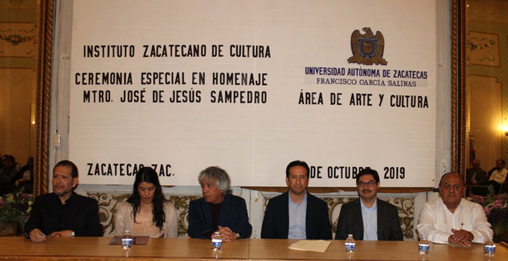 La ceremonia se desarrolló en el Foyer del Teatro Fernando Calderón, en presencia del director del Instituto Zacatecano Cultura Ramón López Velarde, Alfonso Vázquez Sosa; del coordinador del Área de Arte y Cultura, Cuitláhuac García Medina; y del dirigente del Sindicato del Personal Académico de la Universidad Autónoma de Zacatecas (SPAUAZ), Pedro Martínez Arteaga.