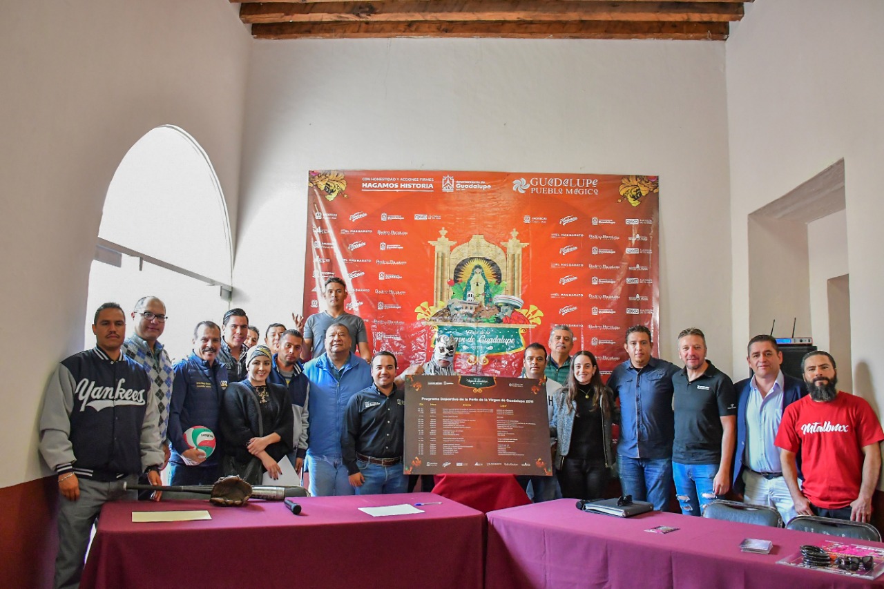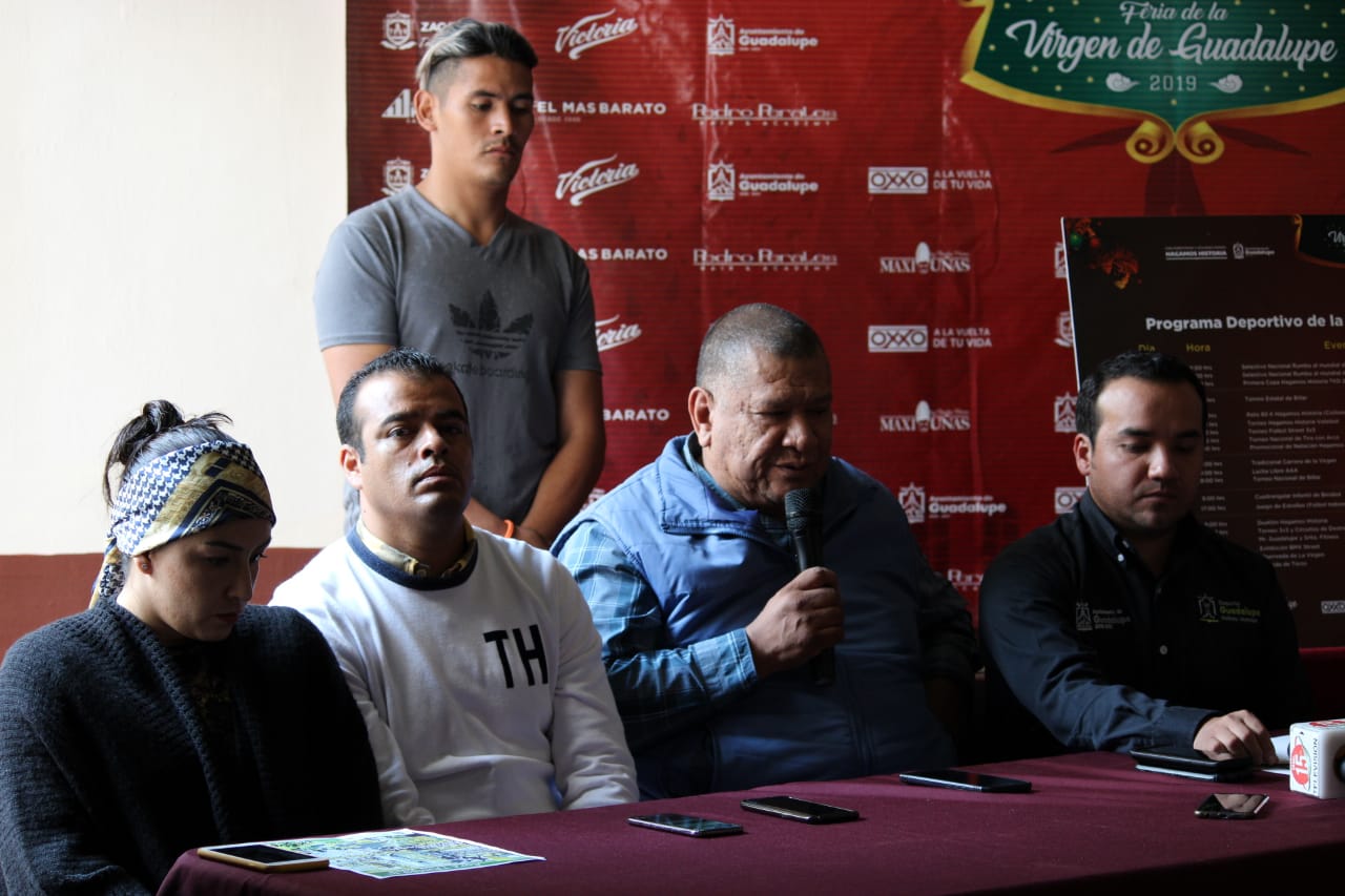 GUADALUPE. Con un total de 18 eventos deportivos y un presupuesto de 430 mil pesos, autoridades municipales del deporte y del Patronato de la Feria Estatal de la Virgen de Guadalupe en su edición 2019, presentaron el programa de actividades deportivas que se llevarán a cabo con eventos de calidad, de inclusión y totalmente gratuitos.