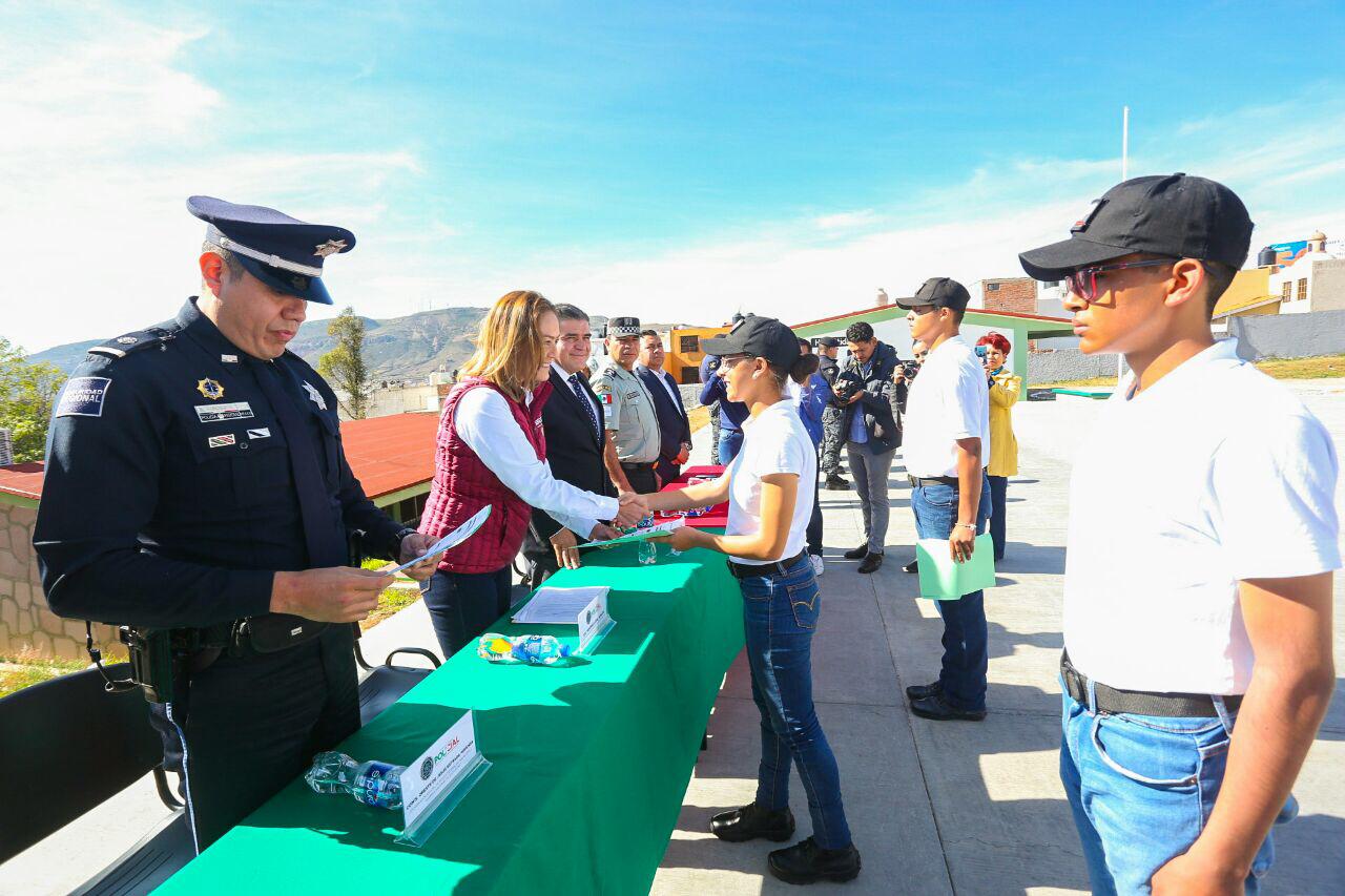 ZACATECAS, ZAC.- En reconocimiento a su determinación y como un incentivo para su formación académica, el Gobierno de México entregó los apoyos del programa Becas para el Bienestar “Benito Juárez” a 147 jóvenes que conforman la primera generación del Bachillerato General Policial, quienes “aportarán sus conocimientos al servicio de Zacatecas para la construcción de la paz y la regeneración del tejido social”.