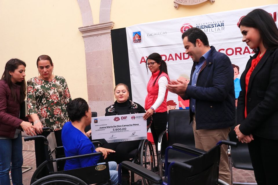 ZACATECAS. En el marco del Día Internacional de las Personas con Discapacidad, el alcalde capitalino Ulises Mejía Haro aseguró que la administración que encabeza trabaja de manera permanente y coordinada, con una visión progresista y sin distingo de colores para atender a este sector, además de encabezar la entrega de becas y diversos aparatos funcionales a 150 beneficiarios de la Joya de la Corona.