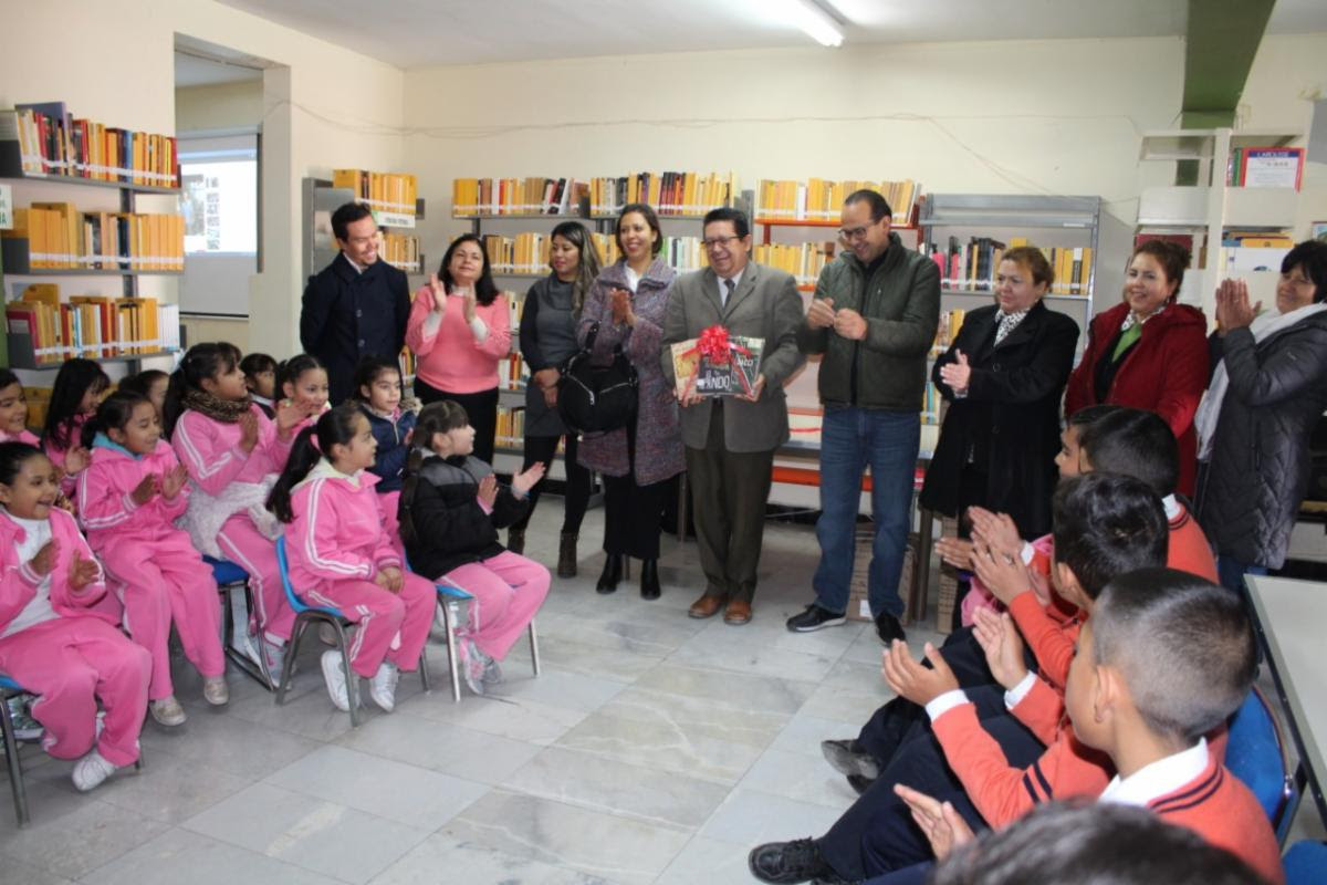 El coordinador de Bibliotecas entregó más de 450 libros, 6 equipos de cómputo, un cañón proyector, bocinas y otros aditamentos, además de las 10 tabletas electrónicas que conforman la Sala de Lectura Digital, segunda de su tipo en el estado y que en el evento fue inaugurada.