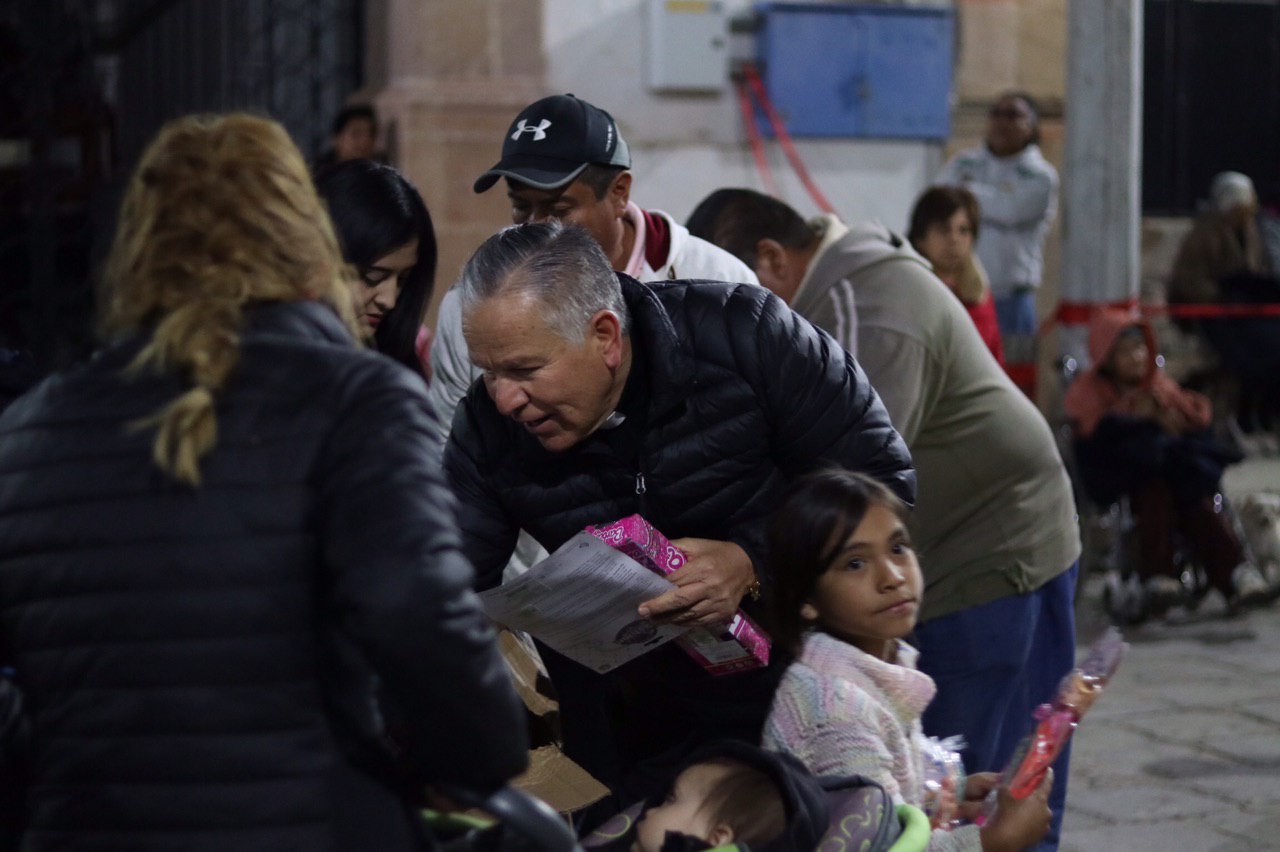 Más de 3 mil 500 habitantes de la comunidad, guiados por Monseñor, Antonio Soto Guerrero, primero ofrecieron posada como se hace en la tradición católica y enseguida, Monreal Ávila, entregó juguetes, bolos y cobijas a niños, niñas y personas de la tercera edad.