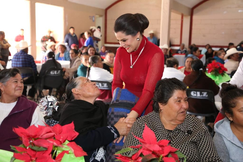 La Presidenta Honorífica del SEDIF llevó a la población de estos lugares el programa Cobijando a las Familias con Amor, que se aplica en un esquema peso a peso con los gobiernos municipales, mediante el cual entregó cobijas para los adultos mayores y pelotas y bolos para las niñas y niños.