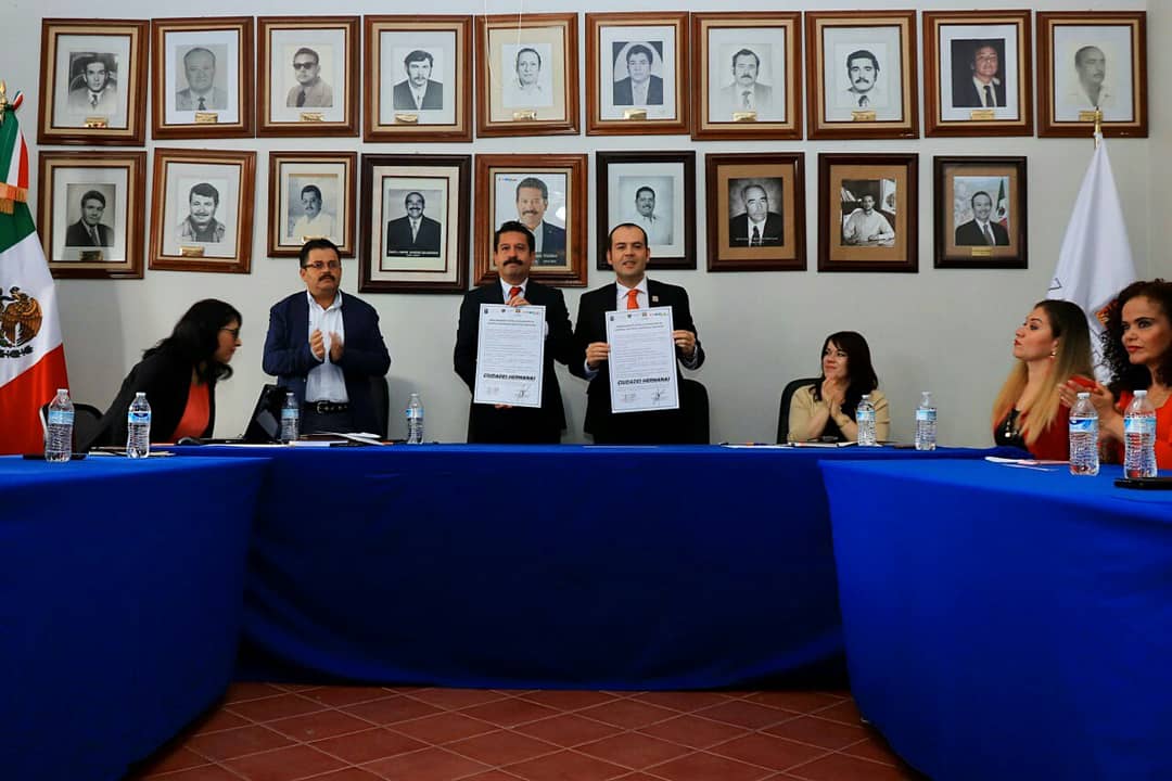 Fue durante sesión solemne de Cabildo cuando Ulises Mejía Haro y su homólogo Rafael Jiménez Núñez, alcalde de Juchipila, firmaron la carta de hermanamiento entre ambas ciudades estableciendo compromisos como:
