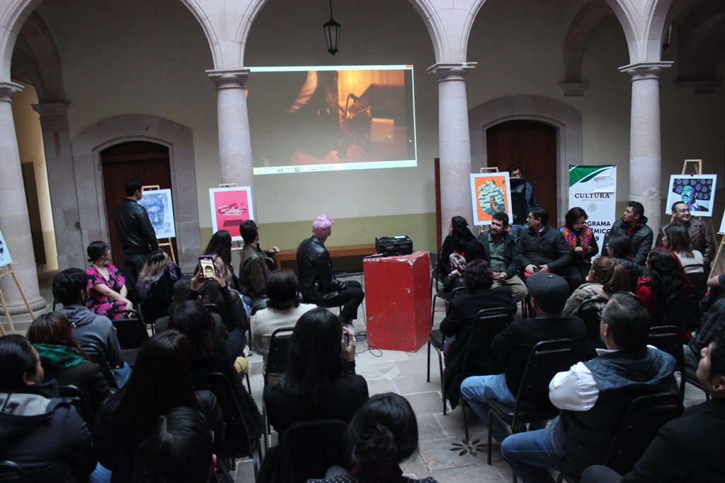 Algunos de los creadores hablaron de las obras que realizaron en serigrafía, ilustrando cada mes del año con la imagen de Antonio Aguilar, que muestra una reflexión contra los estereotipos; enfoques de la imagen religiosa, los colores de Pedro Coronel, la mujer en el arte literario a partir de Amparo Dávila y Dolores Castro, Francisco Goitia y el paisaje zacatecano, entre otros.