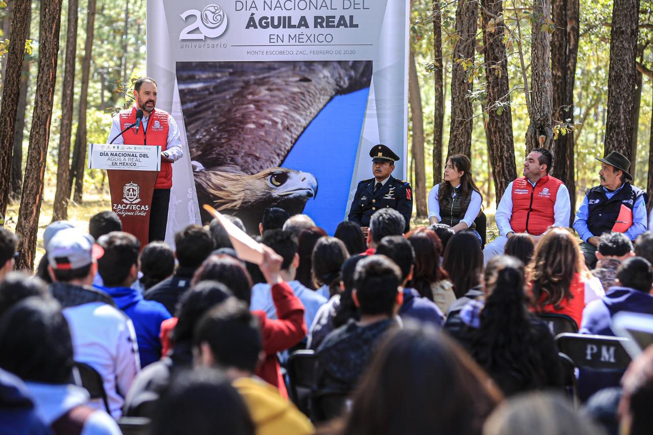 En la sierra de Monte Escobedo, la región con el mayor número de ejemplares de águila real en el país, el mandatario se comprometió a que, en lo que resta de su administración, Zacatecas destacará por su trabajo y aportación a la protección de la fauna y el medio ambiente.