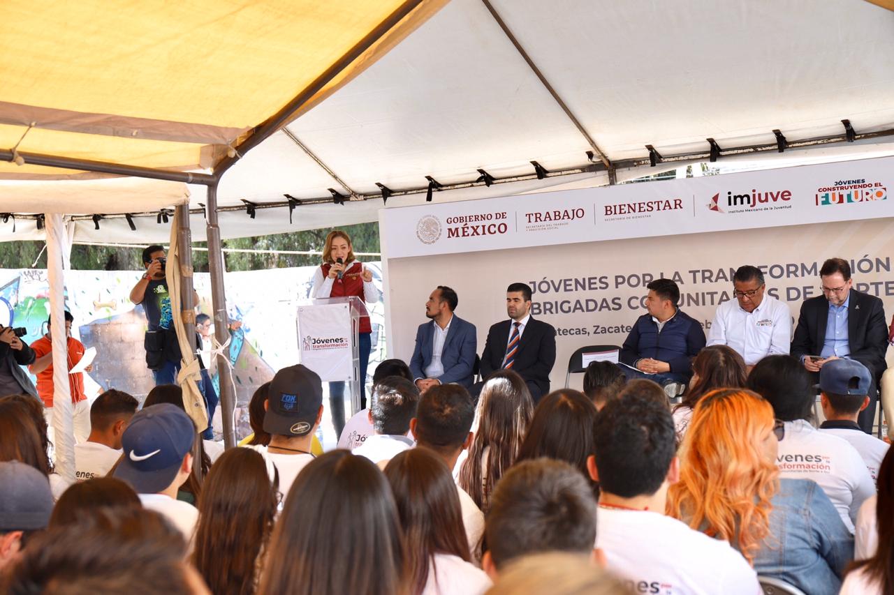 ZACATECAS. En un esfuerzo interinstitucional y por medio de los programas Jóvenes Construyendo el Futuro y Jóvenes por la Transformación, el Gobierno de México impulsa las Brigadas Comunitarias de Norte a Sur, en las que los jóvenes becarios participan en actividades enfocadas al rescate de espacios públicos y la regeneración del tejido social en los municipios de Fresnillo, Zacatecas y Guadalupe.