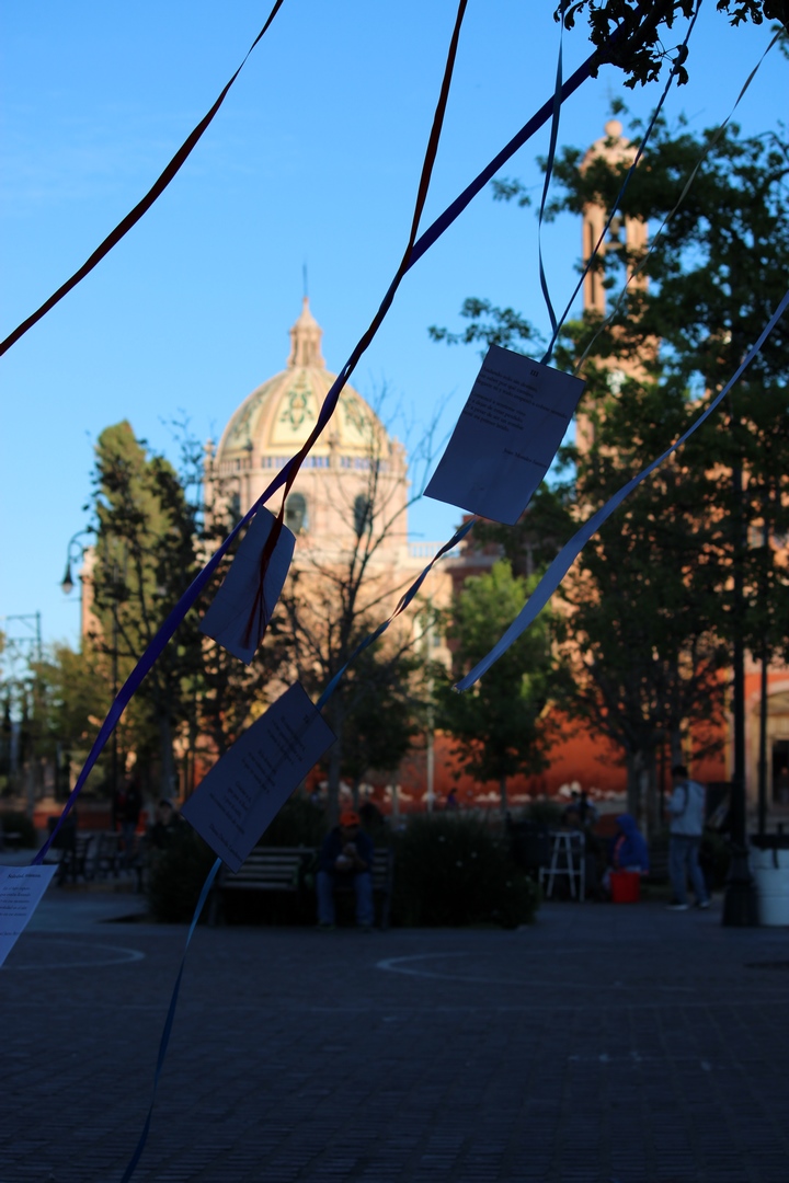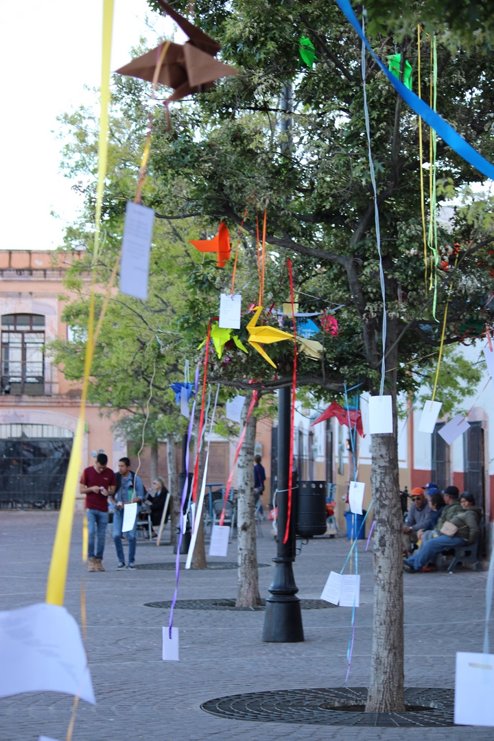 El evento finalizó con una actividad llamada El árbol de la sabiduría, en la que los alumnos colgaron aves de papel, realizadas desde la papiroflexia, así como sus poemas en los árboles del jardín Juárez de Guadalupe, lugar en el que se ubican las instalaciones del Instituto Municipal de Cultura.