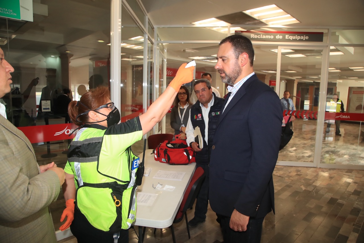 Como parte de los filtros implementados por las administraciones de la central camionera y del aeropuerto, se somete a los viajeros a cuestionarios relacionados con su salud y, si presentan algunos de los síntomas, se canalizan al servicio médico, que se prestará durante las 24 horas del día, tanto al arribo como a la salida de pasajeros.
