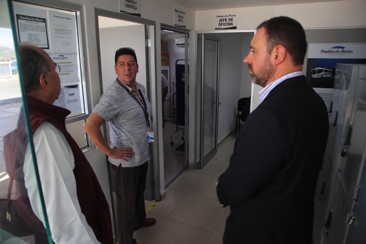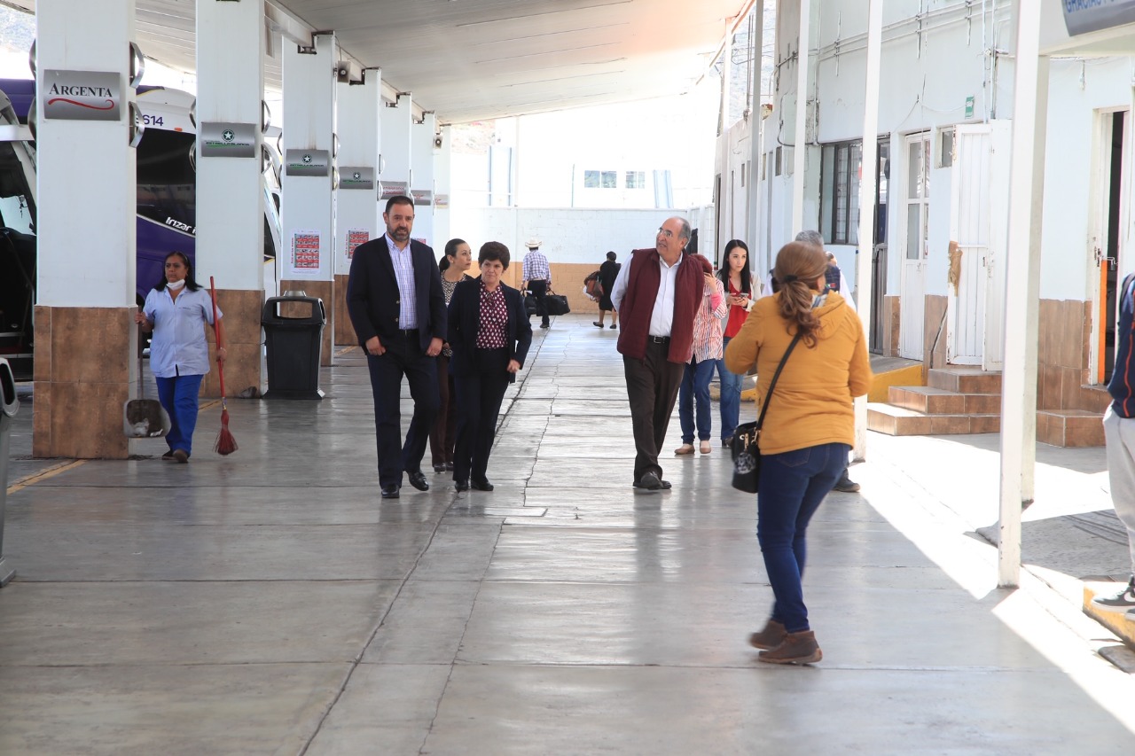Junto con Lucía Díaz Venegas, gerente general de la terminal de autobuses, el mandatario estatal conoció las acciones que realiza la Secretaría de Comunicaciones y Transportes (SCT) para detectar a los posibles viajeros con síntomas propios del coronavirus o de otros padecimientos infeccioso-respiratorios, a fin de atenderlos de inmediato.
