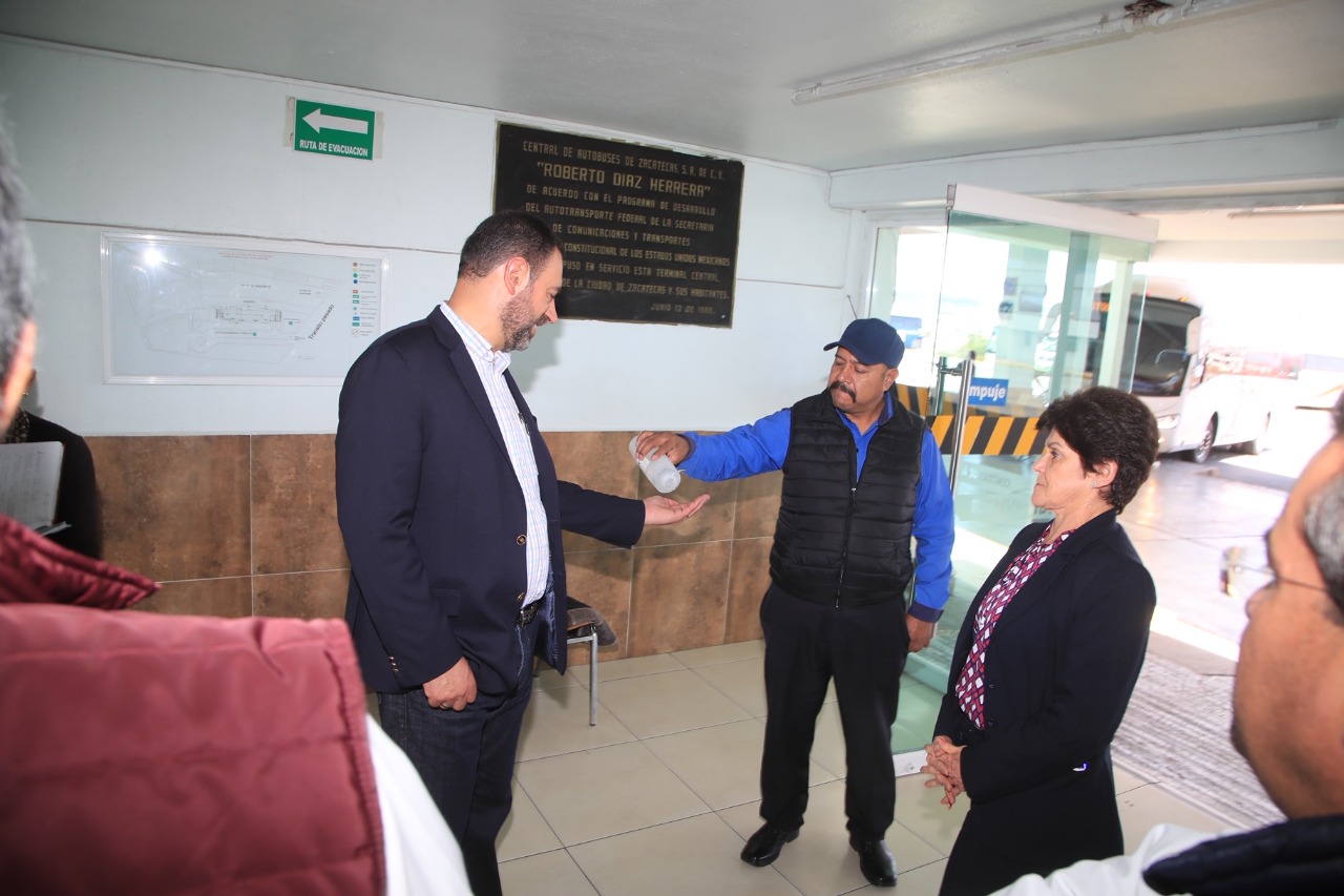 CALERA DE VÍCTOR ROSALES. Ante la contingencia derivada de la propagación del coronavirus (Covid-19) a nivel mundial, el Gobernador Alejandro Tello puso en marcha medidas de prevención y reforzamiento de filtros sanitarios, tanto en el aeropuerto como en la central camionera de Zacatecas.