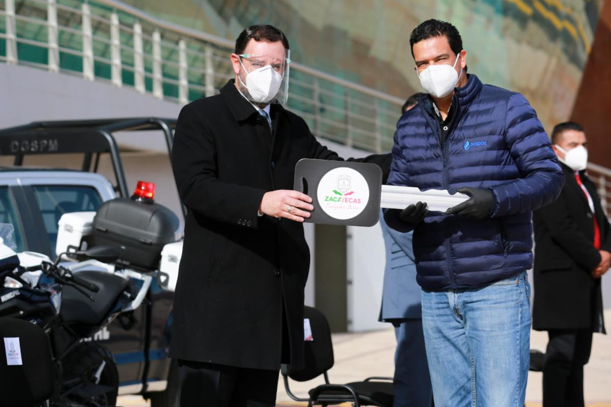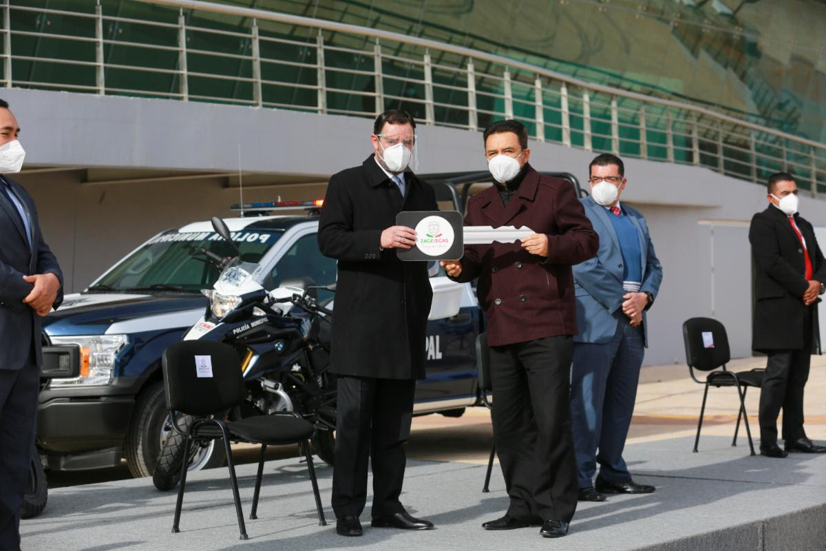 Alejandro Tello resaltó que este día es histórico en medio de la pandemia, porque, más allá de que se fortalece el tema de la seguridad con estas patrullas y equipamiento, hoy se aplicaron las primeras vacunas en el estado, “y esto llena de esperanza a la población”.