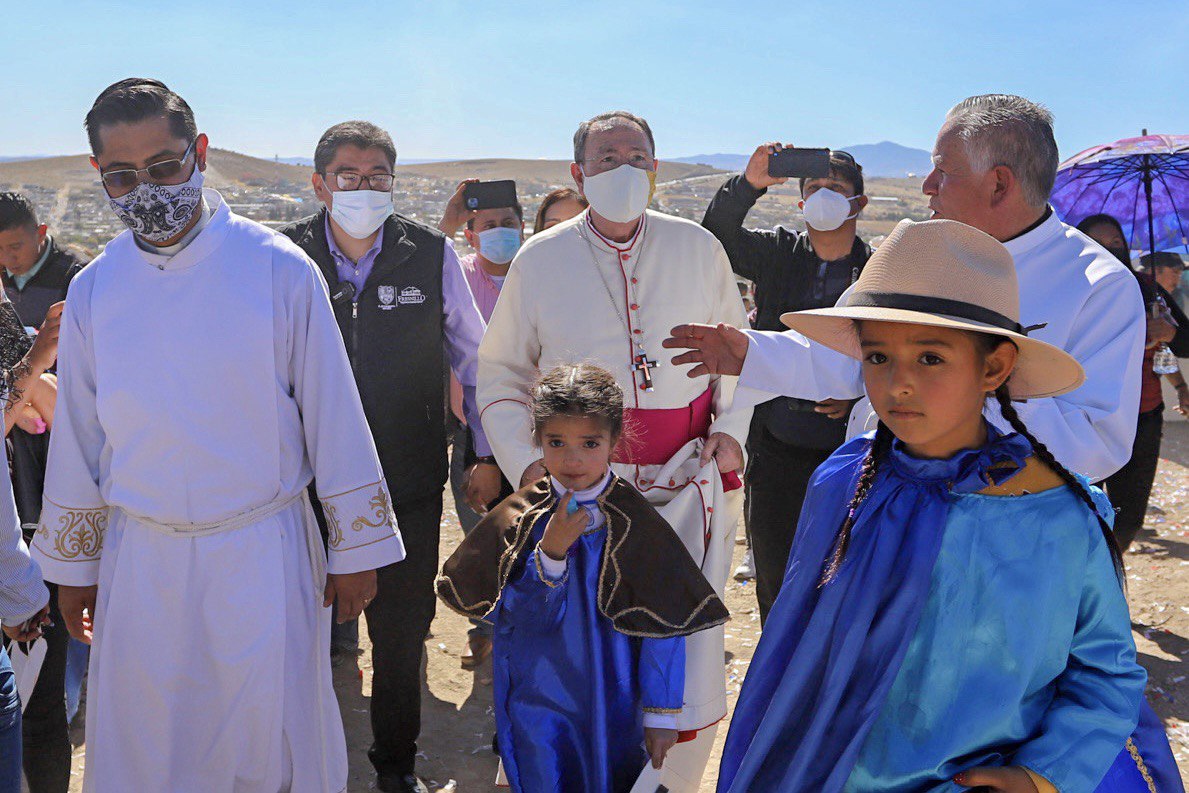 La imagen del Santo Niño se ubica en el cerro de La Cruz, donde llegó el obispo Sigifredo Noriega Barceló para bendecir la imagen con la finalidad de que todos los peregrinos desde ahora puedan visitarlo.