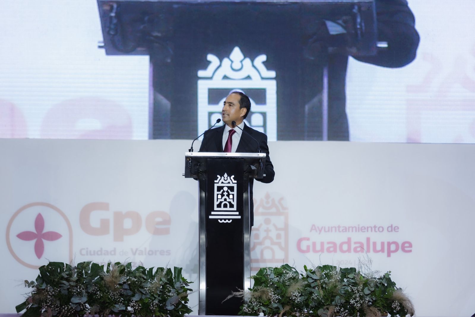 Durante un acto solemne que tuvo lugar este lunes 15 de septiembre en el auditorio de la Presidencia Municipal de Guadalupe, el alcalde, Pepe Saldívar, rindió su primer Informe de Gobierno correspondiente al periodo 2024-2025 ante el Gobernador de Zacatecas, David Monreal Ávila, autoridades estatales, municipales y ante cientos de ciudadanos guadalupenses. El primer edil …
